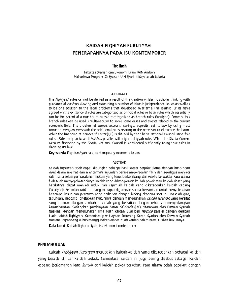 Pdf Kaidah Al Masyaqqah Tajlibu At Taisir Dalam Ekonomi Islam