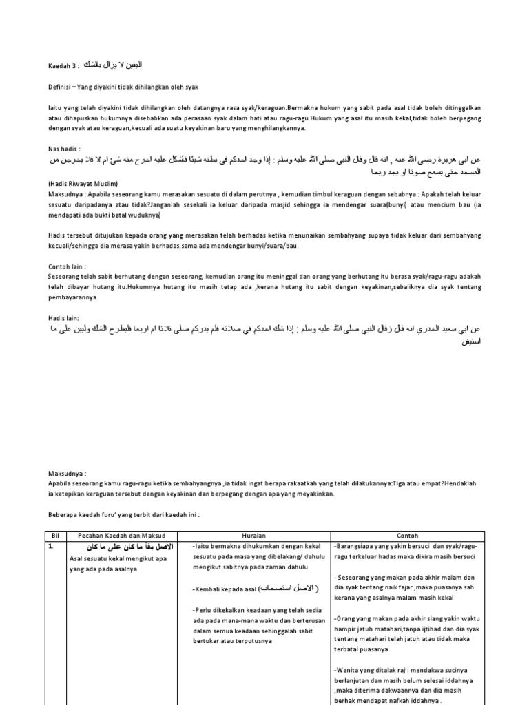 Kaedah 3 Al Yaqinu La Yuzalu Bi Asy Syak Pdf