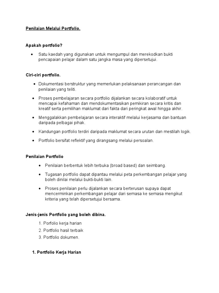 Antara jenis pentaksiran Performance Based ialah melalui portfolio kaedah pentaksiran berpusat serta mengukur berdasarkan keupayaan. TUGASAN PSK 3102. View flipping ebook version of Portfolio koleksi pelbagai jenis aktiviti alat dan bahan dan teknik dalam empat bidang kegiatan seni.